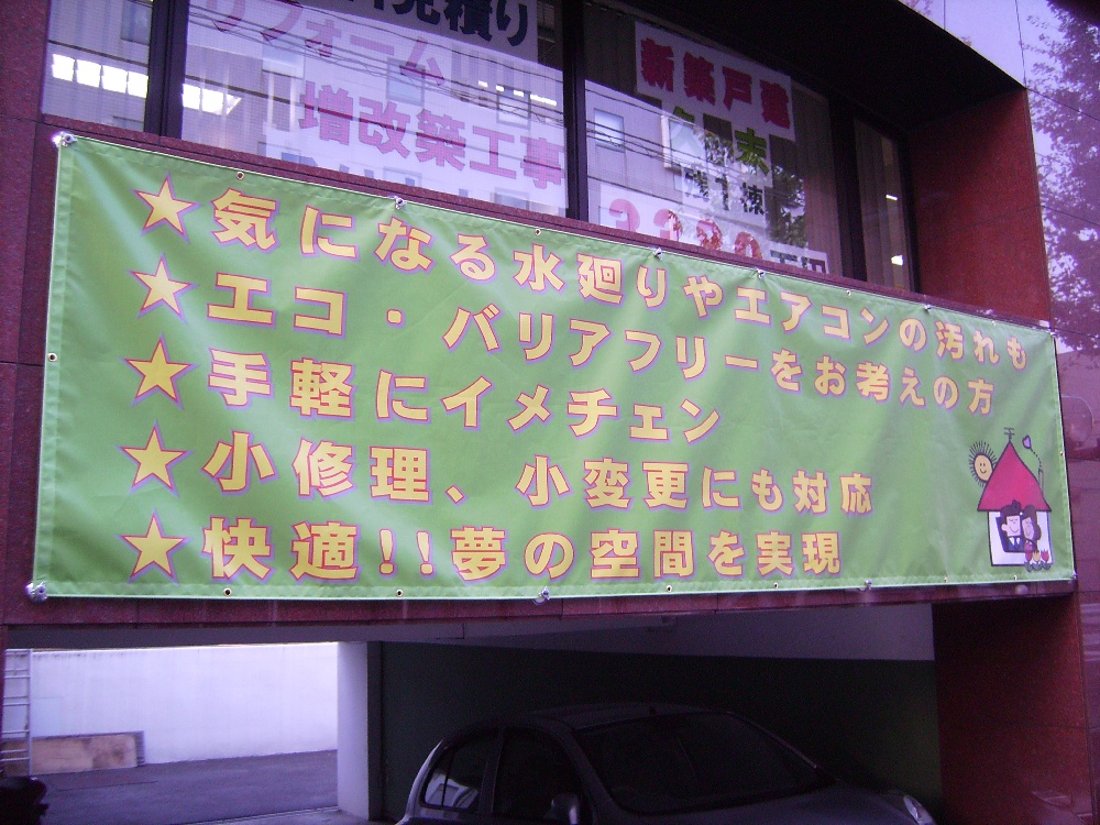当社の外観に120㎝×450㎝の大きな広告を掲示しておりましたが