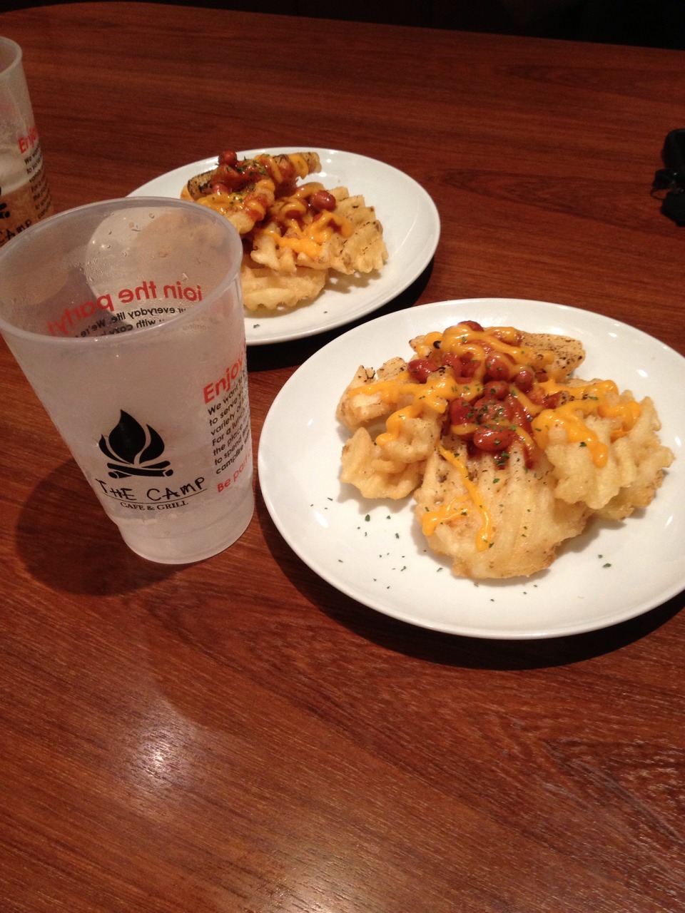 ちょっと前の話になりますが、6月17日、18日は 大人のための夜遊びパラダイス!『小川町バル』を開催しておりました。 今回は、TVKの取材が入り、例年にも増して更に盛り上がったようです。 知らない人の為に、ご説明致しますが チケットを当日なら5枚組4000円、前売りなら3500円で購入し 色々な店に行きバル用のメニューを食べれるイベントです。 普通なら一品食べて出てしまうなど、中々できませんが バルなら大丈夫。 その為、たくさんの店を味わえたり、普段は敷居が高くて入りづらい店にも行けます。 今日は訪れた5件の内、1件をご紹介致します。 ザ キャンプ カフェ&グリルです。 普段から、結婚式の二次会や その他パーティーで賑わっております。 クリスプティスポテトの チリチーズ焼き。 飲み物は生ビールと グラスワインと ソフトドリンクの中から 1杯をチョイスできます。 基本的に照り焼きが美味しい店です。 次回は2店舗目をご紹介致します。 PR 2013/06/23 (Sun) 19:03:11 この記事にコメントする