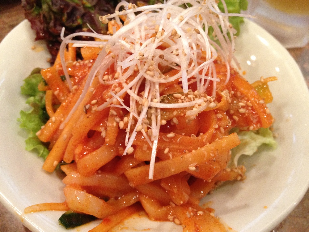 定例休前日の23日、絶品の焼肉屋『とうがらし』に行って来ました。 仕事仲間の『M氏』の紹介にて始めていった日から病みつきになり この日が来るのを楽しみにしていました。 ここのお勧めは 『塩ハラミ』。 閲覧していただいている皆様 キーボードによだれを垂らさないで下さい。 火を通す前の写真を撮り忘れたのが残念です。 しかし、それでもこの絵柄! 仕事のストレスが吹っ飛びます。 美味しい肉と冷たい生ビールの ハーモニー。 幸せの極みと言えます。 この日は年齢に伴い、出てきた腹を気にせず 楽しみました。 満腹したお腹を多少冷ます一品。 落ち着いて飲みながら語るひとときを 楽しめます。 場所は 神奈川県川崎市川崎区鋼管通3丁目16 の一角です。 皆様も舌鼓を鳴らしに行って下さい。 2012/10/25 (Thu) 17:55:59 |