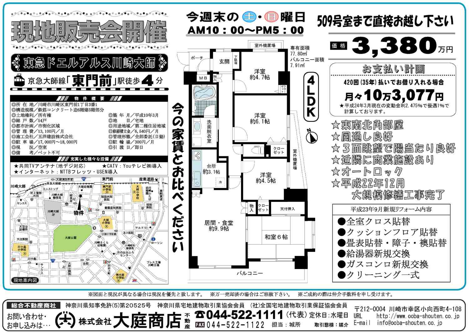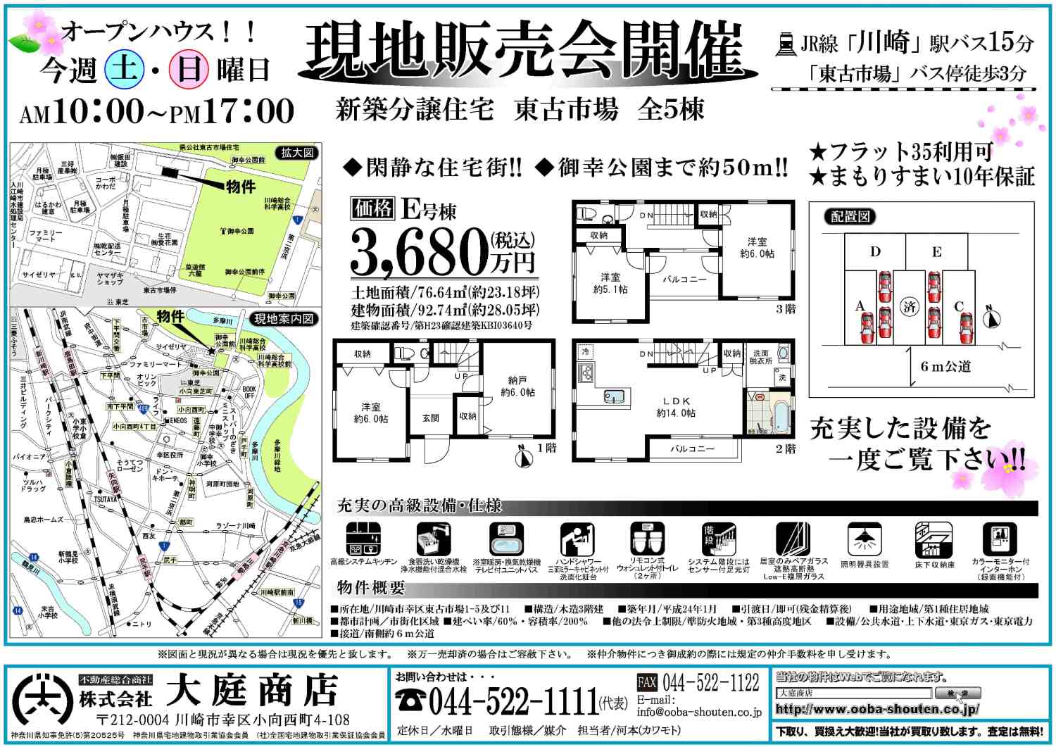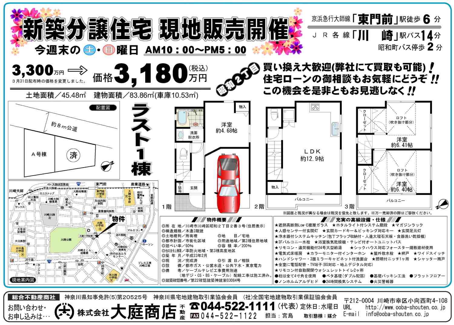 天気は良くとも肌寒い一日でした。 桜満開のが発表されての週末だけにそれでも 各名所は花見客で賑わったようです。 当社では今日明日と現地販売会を行っています。 ①川崎区昭和2丁目『新築戸建』 ②川崎区東門前『売マンション』 ③幸区東古市場『新築戸建』 で行っています。 お問い合わせは → こちら 花見の帰りに是非お立ち寄り下さい。 PR 2012/04/07 (Sat) 19:29:45 この記事にコメントする